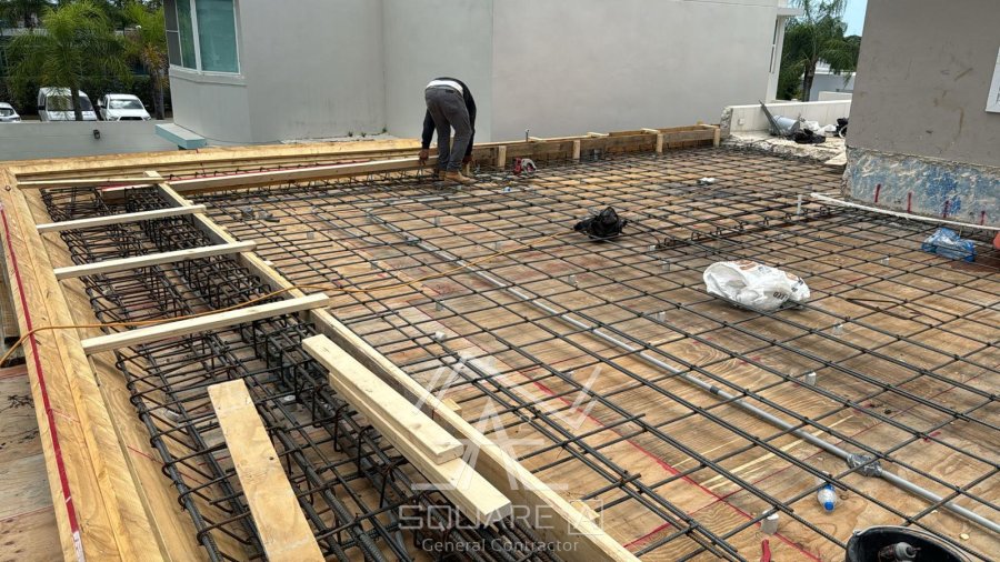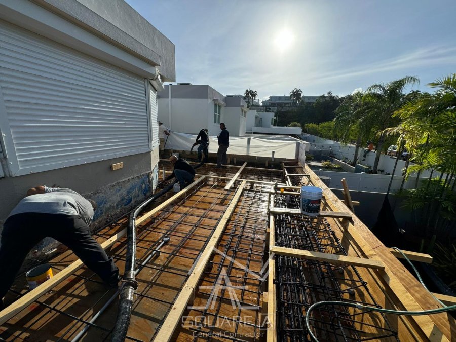 - Terrace expansion: demolition, steel (rebar), carpentry, and concrete pouring
