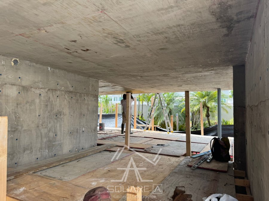 - Kitchen expansion: demolition, steel (rebar), carpentry, and concrete pouring